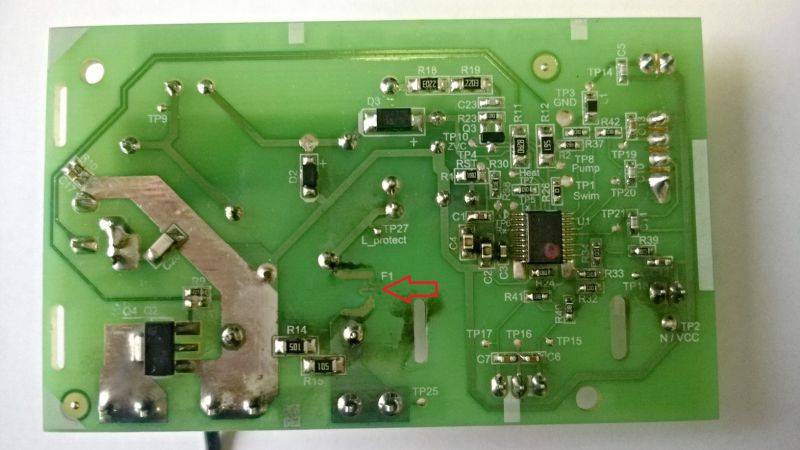 На "задней" стороне выгорела дорожка обозначенная на фото стрелкой, из элементов выгорел, я так понимаю судя по виду, варистор. Проблема в том,что выгорела стенка на которой была нанесена маркировка номинала варистора, за сим в настояще время я не знаю что выбрать на замену. Пытался гуглить принципиальную схему по артикулу платы 9744R.12 main PCB, но поиск результатов не дал, или я как-то неправильно искал. Прошу помощи в подборе комплектующих для ремонта. Заранее спасибо.