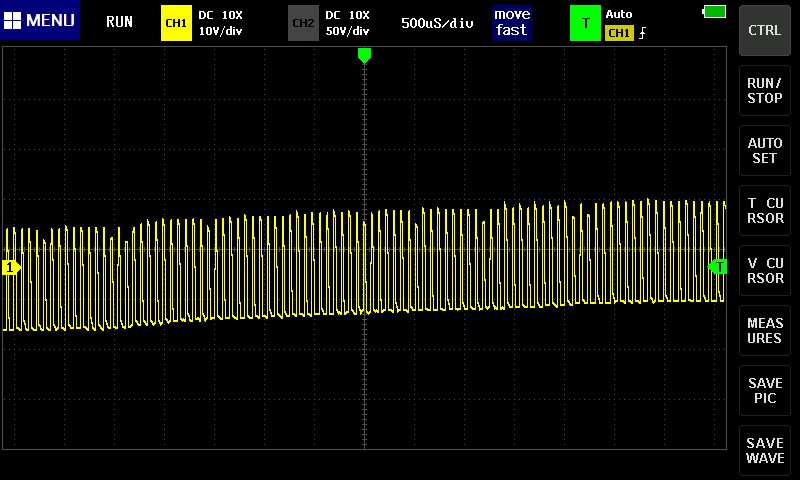 Кстати вот осциллограммы с муфты (поймал момент когда она заработала).