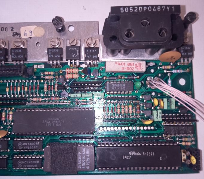 Родное управление начинает работать только когда само захочет, причём нет абсолютно никакой закономерности. Может поработать 30 секунд, а может 2 часа, но глюканёт обязательно. Сразу скажу, что плата почищена, пропаяна, прозвонена и проверена под микроскопом. Там внутри целый "компьютер", куча логики, какая-то микруха ROM с окошком для стирания УФ, две "сороконожки" и дохрена рассыпухи. На микрухе с окошком надпись AMD 1979 год . Там есть ещё куча выходов на пневматику для обрезки нитки, смены шпульки, реверса материала, оверлока но эти функции не используются и отключены.