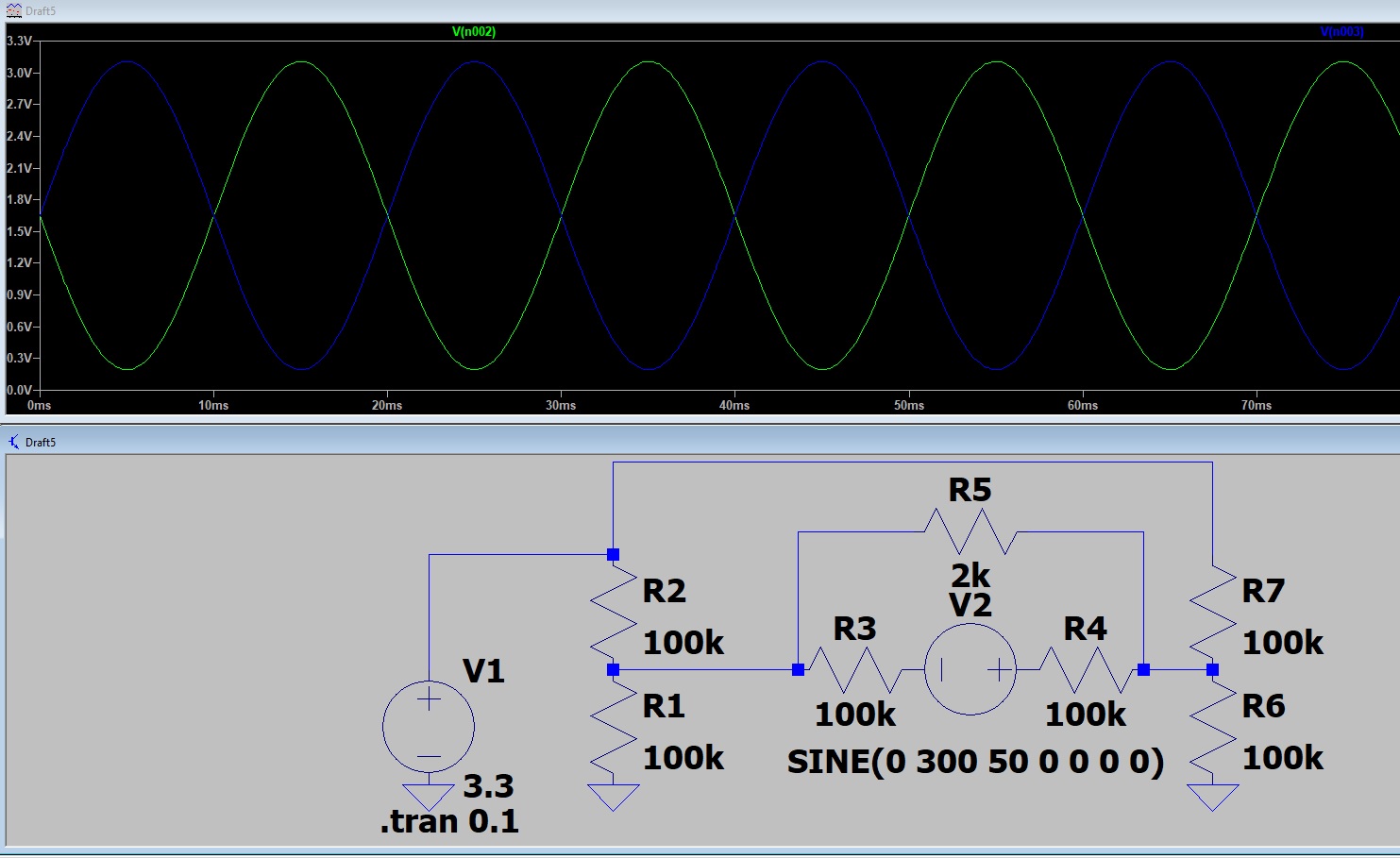 ЗЫ. В догон. Амплитуда на каждом будет вполовину меньше. Источник в симуляторе имеет амплитуду 1 Вольт. Амплитуда плеч - 0,5 Вольта.