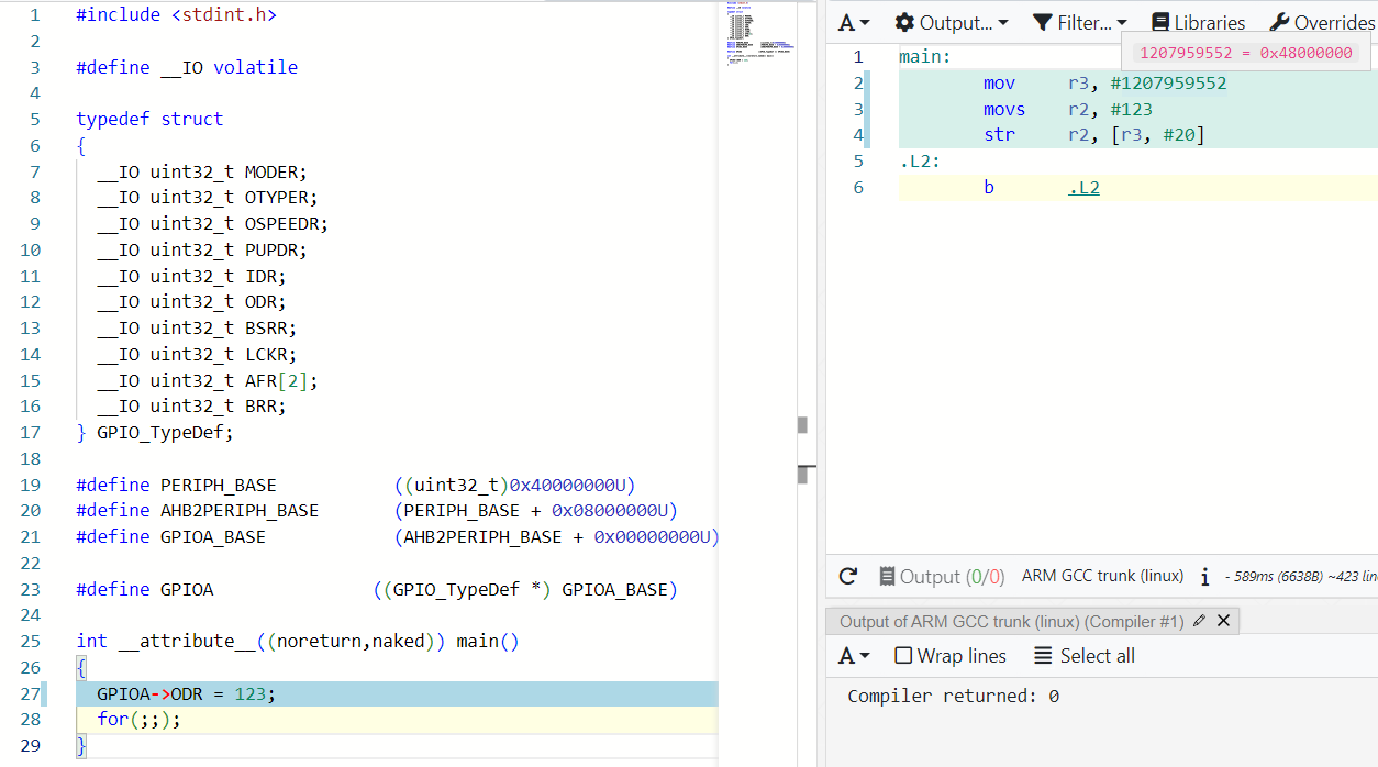 1) как выражение ((GPIO_TypeDef *) GPIOA_BASE) превращается в указатель структуры GPIO_TypeDef?