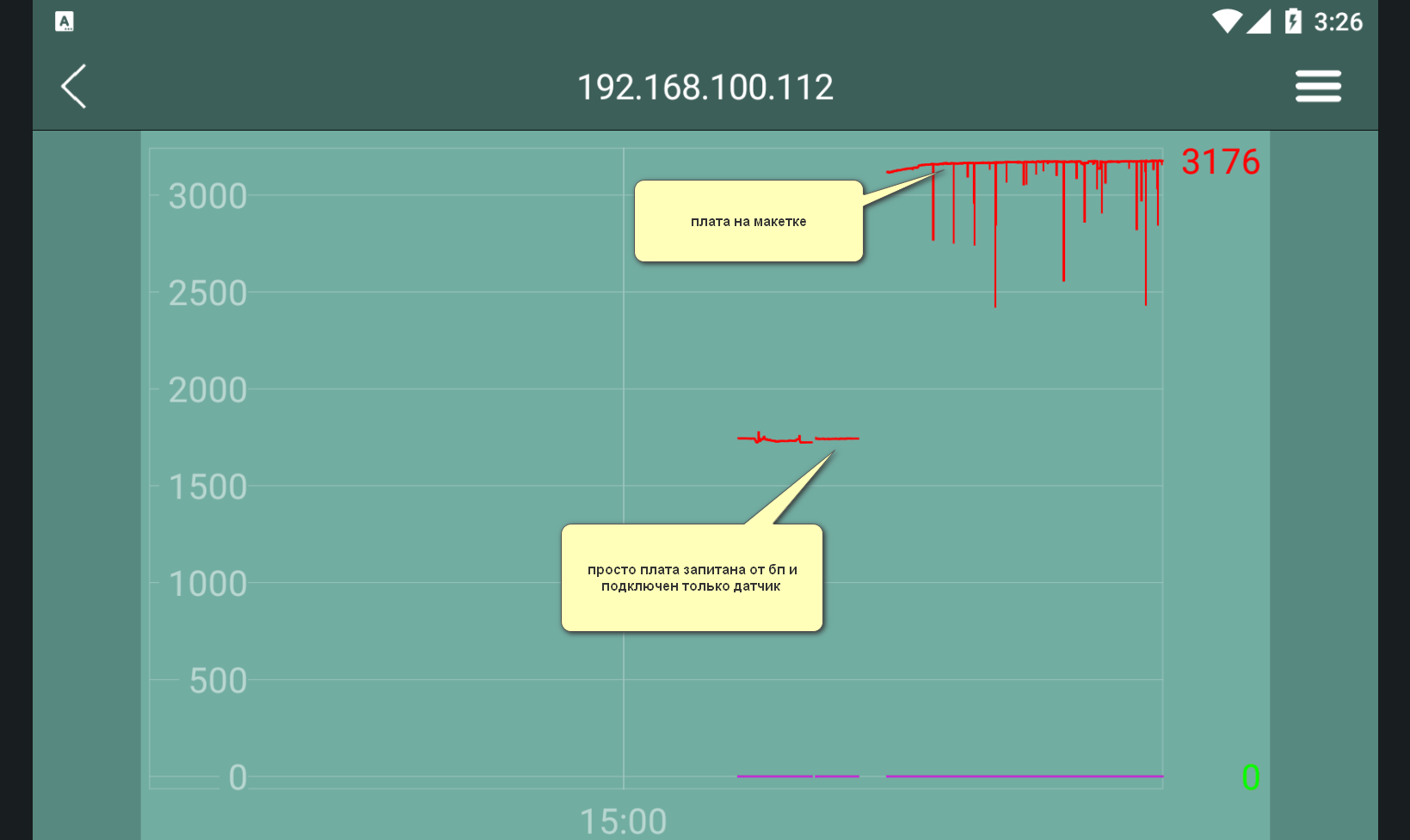 тут даже странно то что я взял другой есп32 такую же плату девкит v1 и там ацп выдаёт с датчика 1740 а на этой распаяной схеме выдаёт 3170 что совершенно не правильно разводка простая