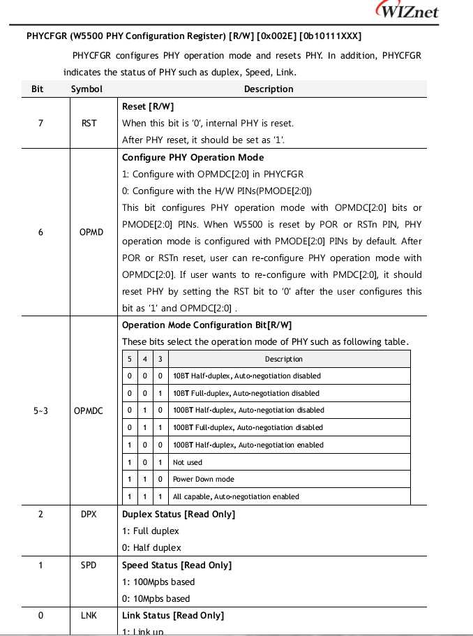 Собственно вся работа с W5500 сводится к записи чтению регистров (согласно даташиту).